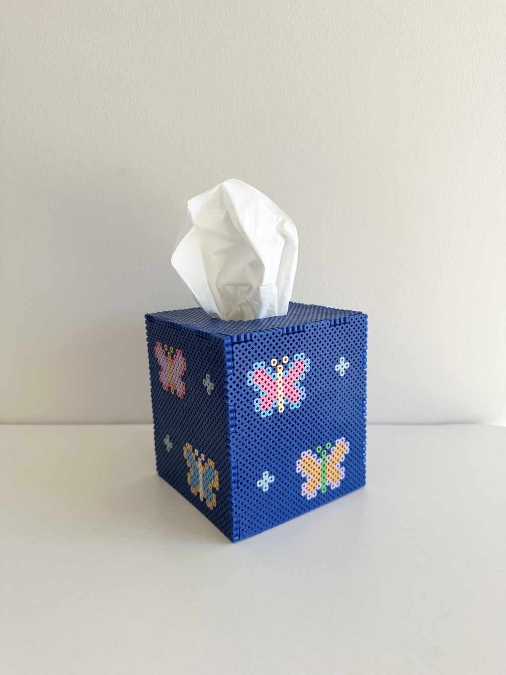 Butterfly Tissue Box CoverKatherine MengMeasures 5"x5"x6" to fit a standard square tissue boxMade with fuse beads$6060usdQuantity1 left160usdBuy thisAdd to wishlist New wishlistShareShare on XShare on Facebook Copy linkCopy product URL